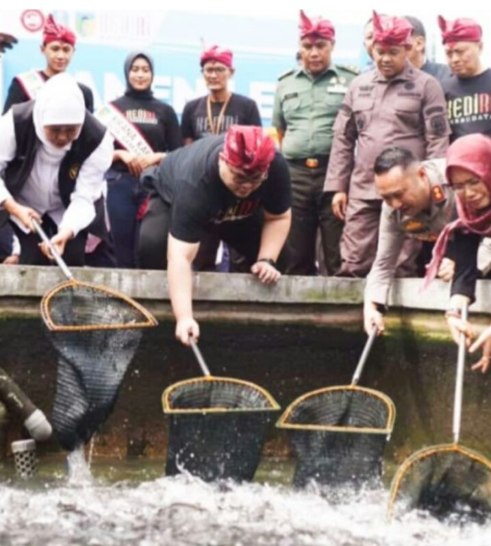 Nampak hadir dampingi Gubernur, Bupati Kediri Hanindhito Himawan, Kapolres Kediri Kota, AKBP Teddy Chandra dan Kapolres Kediri AKBP Agung Nugroho.