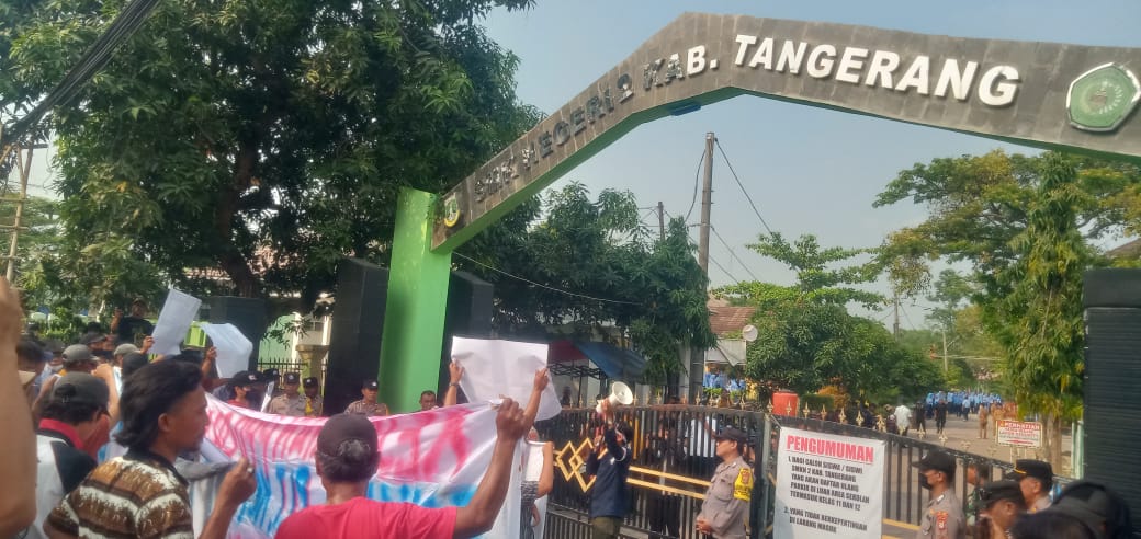 “Tidak ada kata lain bahwa semua proses dari penerimaan pada saat website PPDB SMKN 2 Kabupaten Tangerang ini hanya 864 itu pun dengan jalur tes yang tidak transparan dan banyak tidak lolos orang-orang yang cerdas dan berprestasi, tapi orang yang tidak berprestasi ada titipan melalui jalur awal begitu banyak di tambah lagi, tambahan titipan begitu banyak ini tidak benar, dan kita minta agar PLT diperiksa dan diadili dan mau kita buka secara gamblang bahwa ini tidak ada kebenaran, ada kezaliman terhadap anak bangsa yang lainnya yang dimana dekat sekolah tidak diterima, tambahan pun tidak diterima,” ujarnya.