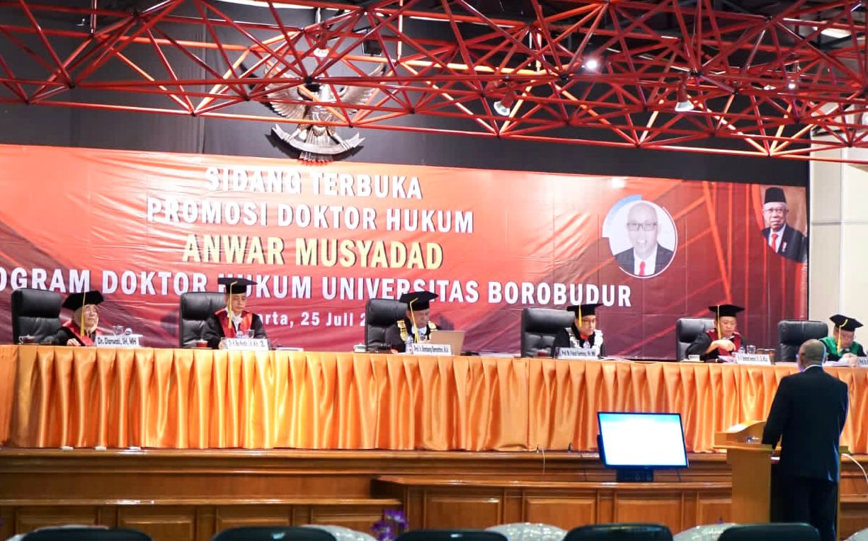 Hadir sebagai penguji antara lain Ketua Tim Penguji Rektor Universitas Borobudur Prof. Bambang Bernanthos, Promotor Prof. Faisal Santiago, Ko-Promotor Dr. Darwati, Penguji Dalam Institusi Dr. Boy Nurdin serta Penguji Luar Institusi Prof. Abdullah Sulaiman.