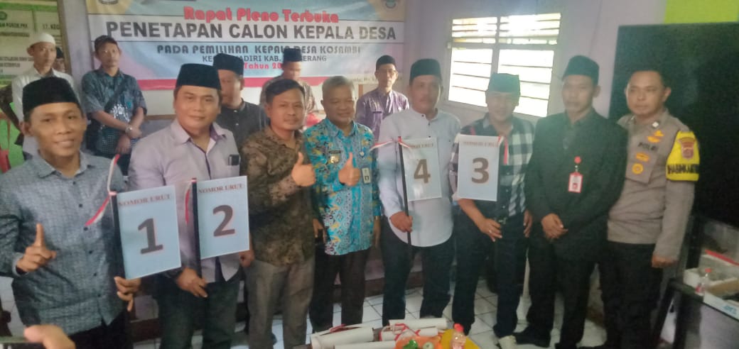 PATRIOTNUSANTARANEWS.COM | TANGERANG – Pemilihan Kepala Desa Pilkades Desa Kosambi sudah memasuki tahapan paling krusial, Panitia Pilkades Desa Kosambi menggelar rapat pleno terbuka penetapan calon kepala desa dan pengundian nomor urut calon di Aula Kantor Desa Kosambi dihadiri seluruh panitia pilkades empat calon kepala desa muspika yaitu Camat Sukadiri H Ahmad Hapid, AP. M. Si, Kepala Desa Kosambi Abdul Rohman, Ketua Panitia M Arif Fatur Rohman, Kapolsek Mauk beserta jajarannya, binamas, Babinsa Ketua dan Anggota BPD, serta Tokoh Masyarakat.