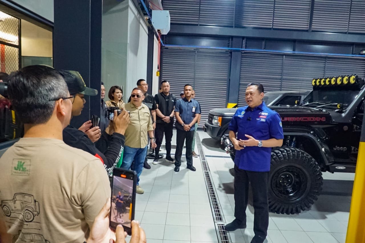 PATRIOTNUSANTARANEWS.COM | TANGSEL – Ketua MPR RI sekaligus Ketua Umum Ikatan Motor Indonesia (IMI) dan Wakil Ketua Umum Partai Golkar Bambang Soesatyo mengapresiasi komunitas Jeep dari berbagai penjuru Jabotabek dan Banten yang berkumpul di acara grand opening The Cobbs Bistro yang terletak di lantai dua Jeep JHL Auto. The Cobbs Bistro mengusung konsep Australian Bistro, menjadi tempat hang out, kongkow, dan gathering para pecinta otomotif di kawasan Alam Sutera, Tangerang. Termasuk bisa menjadi tempat kumpul komunitas sebelum sepedaan, ataupun dijadikan tempat finish line berbagai kegiatan.
