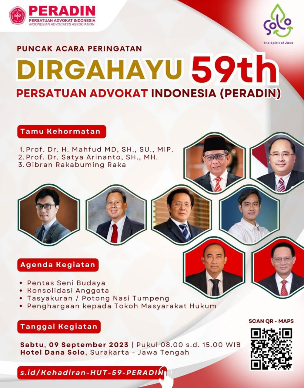 PATRIOTNUSANTARANEWS.COM | JAKARTA – Persatuan Advokat Indonesia (PERADIN) akan segera menggelar acara Hari Ulang Tahun (HUT) yang ke-59 yang jatuh pada 30 Agustus.