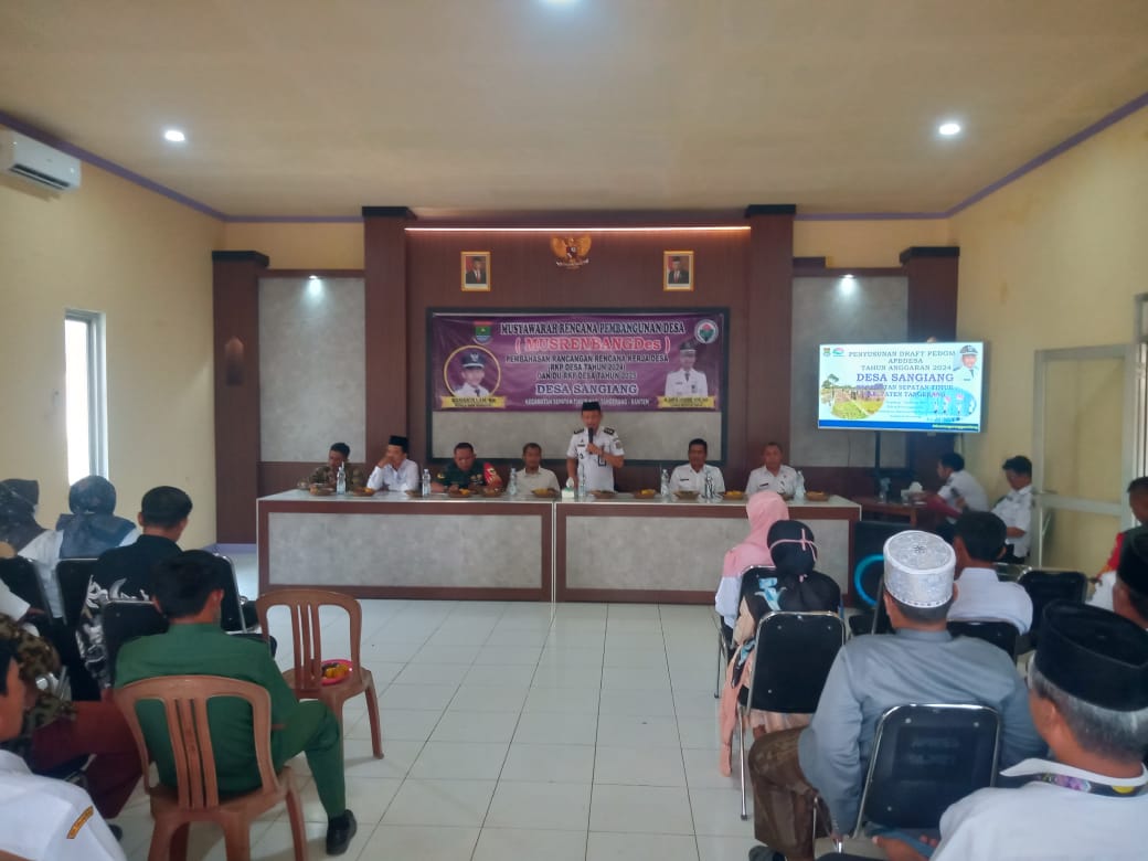 PATRIOTNUSANTARANEWS.COM | TANGERANG – Pemerintah Desa Sangiang Kecamatan Sepatan Timur menggelar agenda Musyawarah Rencana Pembangunan Desa (Musrenbang Desa) yang dihadiri Kepala Desa Sangiang Komarullah SH beserta stafnya, Ekbang Kecamatan Sepatan Timur berserta jajarannya, PPD berserta jajarannya, Ketua MUI desa Sangiang, Karang Taruna Desa Sangiang, LKM Desa Sangiang, Jaro/RT/RW/Limas Desa Sangiang dan Tokoh Masyarakat Desa Sangiang bertempat di Aula Desa Sangiang Kecamatan Sepatan Timur Kabupaten Tangerang Provinsi Banten Rabu 13/09/2023.