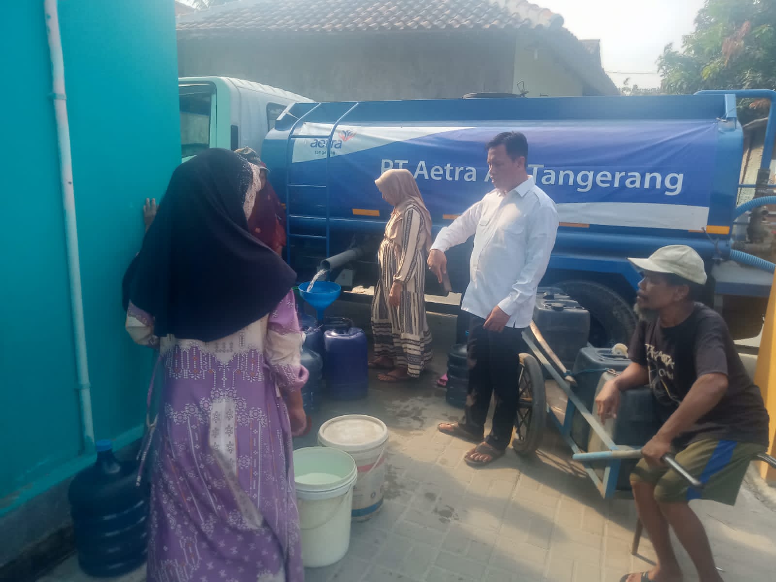 PATRIOTNUSANTARANEWS.COM | TANGERANG – Pembagian air bersih di Desa Gunung Sari dihadiri Kepala Desa Gunung Sari Kalabi S. Pd. I RT dan masyarakat Desa Gunung Sari bertempat di RT 007/002 Desa Gunung Sari Kecamatan Mauk Kabupaten Tangerang Provinsi Banten Jum’at 13/10/2023.