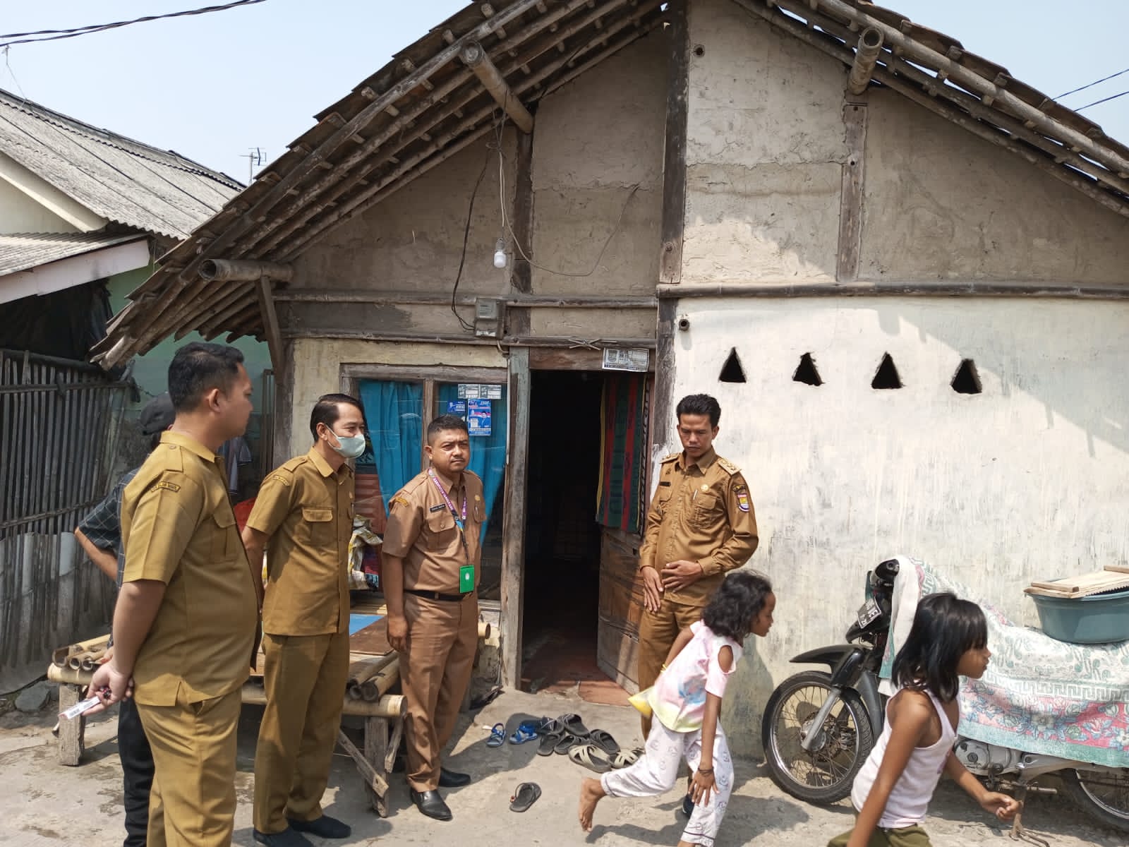 PATRIOTNUSANTARANEWS.COM I TANGERANG – Kepala Desa Sukadiri bersama staf desa dan Kasi Ekbang Kecamatan Sukadiri meninjau rumah tidak layak huni (RTLH) yang didiami oleh empat orang anak yatim piatu yang sempat di muat di salah satu media online.