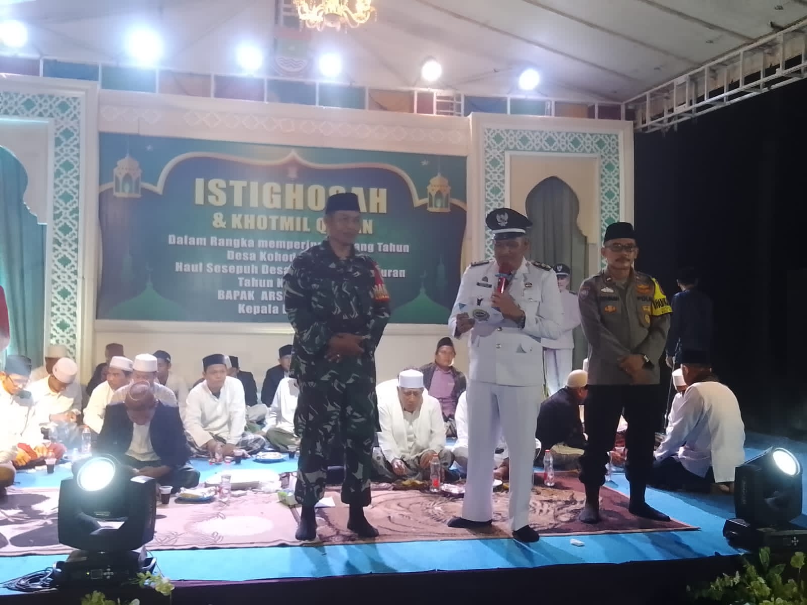 TANGERANG – Dalam rangka memperingati ulang tahun Desa Kohod yang ke-40, haul sesepuh Desa Kohod dan tasyakuran tahun kedua Jabatan Lurah Arsin SH sebagai Kepala Desa Kohod yang dihadiri Camat Pakuhaji H. Mohamad Supriyatna S. Sos. MM, Danramil 10 Sepatan Mayor Inf Jauhari, Kapolsek Pakuhaji yang diwakilkan, Lurah Arsin SH Kepala Desa Kohod, Ketua PKK Desa Kohod Ibu Sri Wahyuni, Sekdes Desa Kohod Ujung Karta, Ketua Panitia Ustad Yusuf Desa Kohod, BPD desa Kohod Babinsa, Binamas, RT, RW, Jaro, para KH, para Sesepuh, Alim Ulama, para Jamaah, Banser dan Linmas bertempat di Lapangan Jalan Simpang Tiga Desa Kohod Kecamatan Pakuhaji Kabupaten Tangerang Provinsi Banten Jum’at malam 24/11/2023.