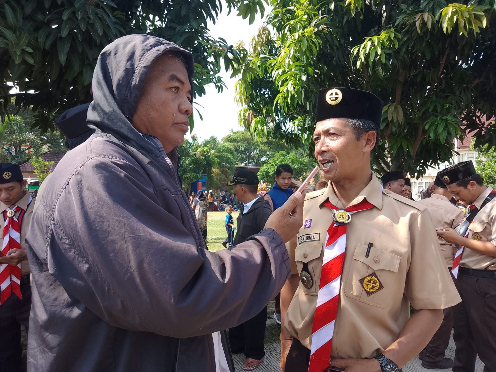 E. Kurnia Ketua Pembina Pramuka saat di wawancarai Awak Media menjelaskan kegiatan ini dilaksanakan di kwarcab.