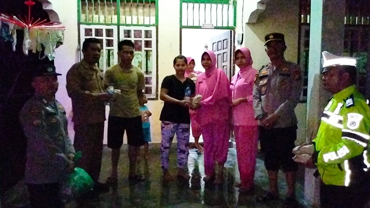 Kapolsek Tambusai Utara, Pengurus Ranting Bhayangkari serta Pemdes Tanjung Medan Beri Nasi dan Air Mineral pada Korban Banjir