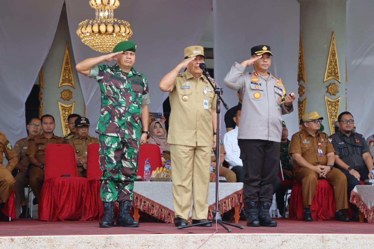 Bertindak, Inspektur Apel Bupati Rohul H Sukiman, Perwira Apel Ps Kabag Ren AKP Hermawan SH dan Komandan Apel Ps Kasat Samapta Iptu Nanang Pujiono SH, dihadiri Kapolres AKBP Budi Setiyono SIK MH, Wabup H Indra Gunawan, Pabung Dandim 0313 / KPR Mayor Inf Andre Suardi, KA PN Rony Suata SH MH, Kalapas II B Bachtiar Sitepu, SH, Ketua KPU Elfendri ST M Eng, Ketua Bawaslu Fajrul Islami Damsir SH MH, para Kepala Dinas Pemkab Rohul dan lainnya