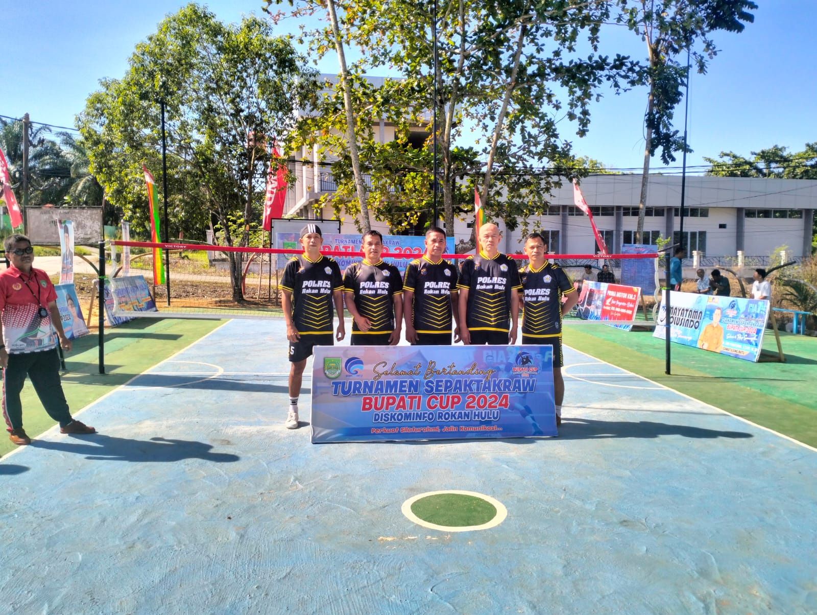 Atas hal ini, Kapolres Rohul AKBP Budi Setiyono SIK MH melalui Kabag Ren AKP Hermawan SH, Timnya yang dipimpinnya ikut berkontribusi dalam ajang Sepak Takraw itu.