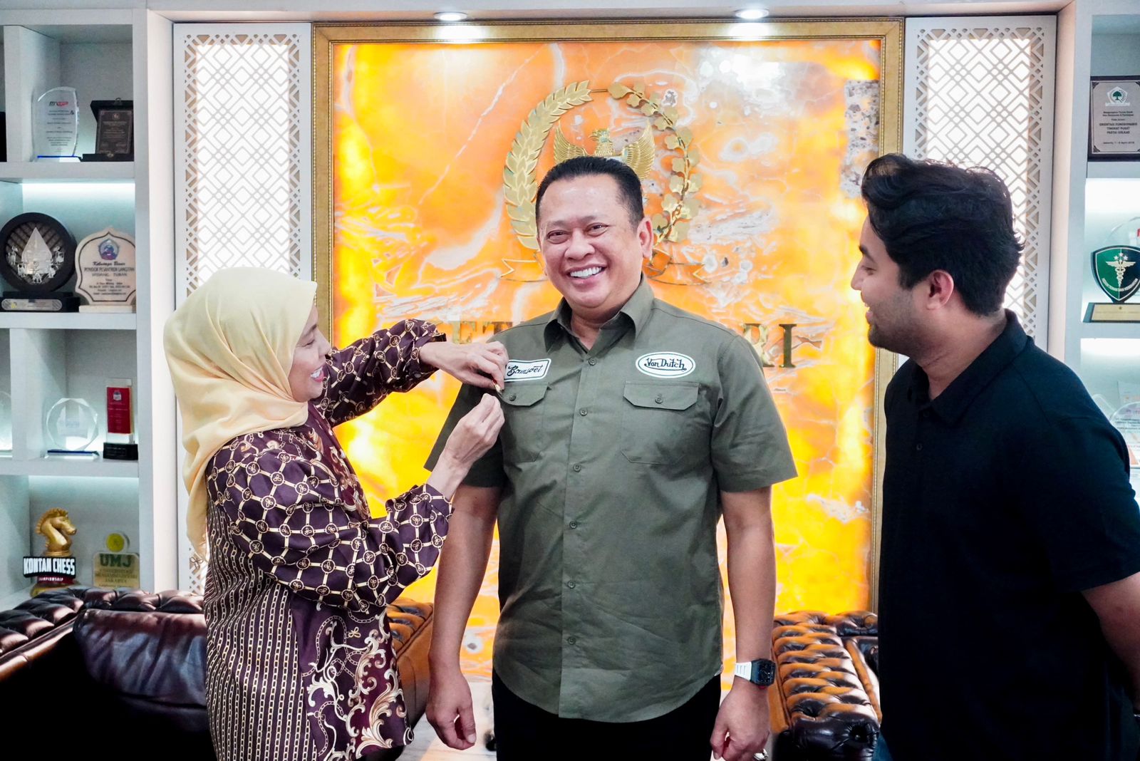 PATRIOTNUSANTARANEWS.COM | JAKARTA – Ketua MPR RI sekaligus Wakil Ketua Umum Partai Golkar dan Ketua Dewan Pembina Perkumpulan Alumni Doktor Ilmu Hukum (PADIH) Universitas Padjajaran (UNPAD) Bambang Soesatyo menerima penyematan PIN sebagai Wakil Ketua Dewan Pembina Ikatan Alumni (IKA) UNPAD menggantikan (almarhum) Fahmi Idris. Penyematan PIN dilakukan langsung oleh Ketua Ikatan Alumni (IKA) UNPAD Irawati Hermawan. Bamsoet akan mendampingi kepemimpinan Pramono Anung sebagai Ketua Dewan Pembina IKA UNPAD.