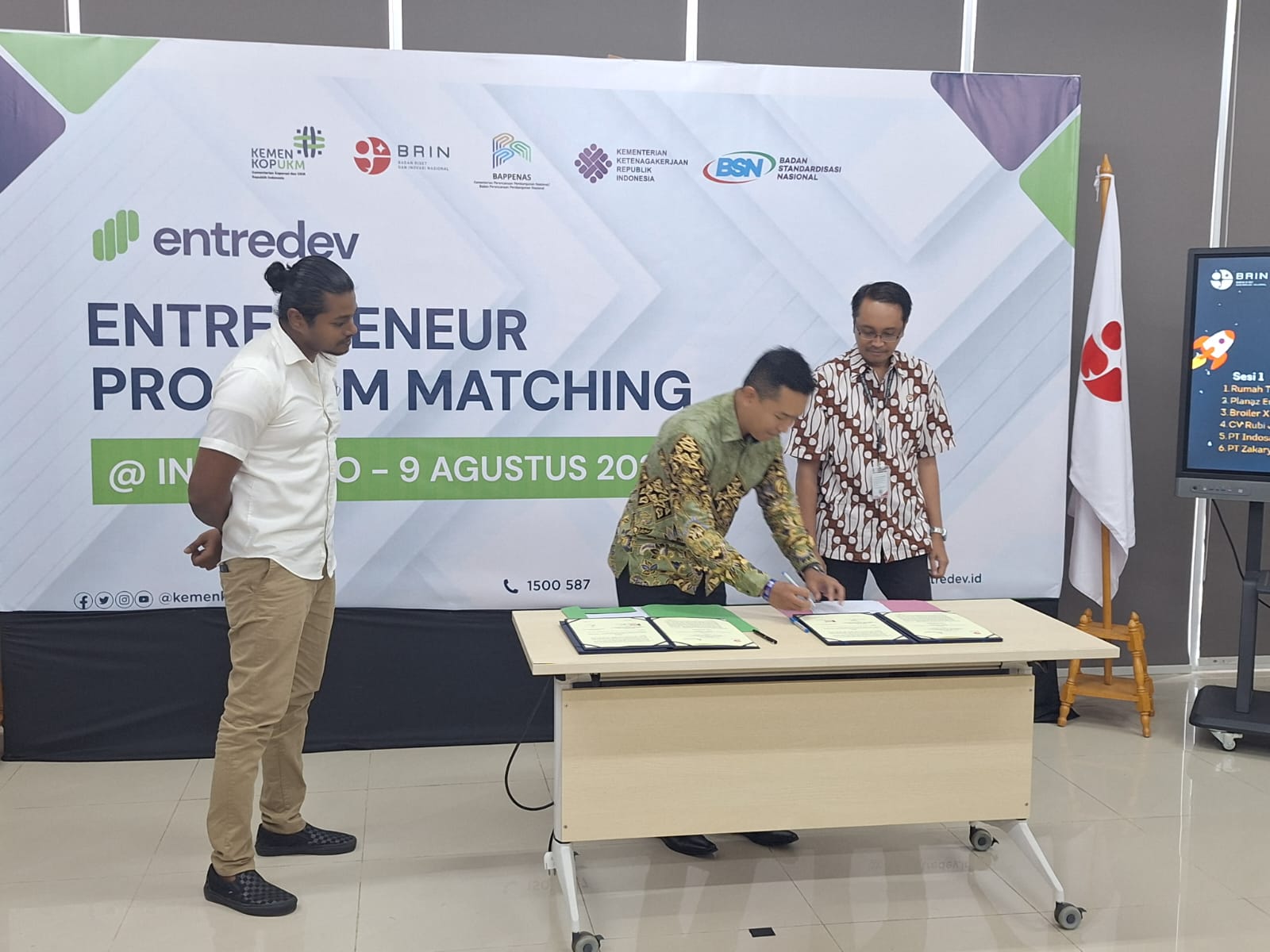 PATRIOTNUSANTARANEWS.COM | BOGOR – Telah dilaksanakan penandatanganan Perjanjian Kerja Sama (PKS) antara Alumni Entredev Grenpace BRIN dan Pusat Riset Botani Terapan dengan PT DNA GrenfarmPusat Riset Botani Terapan-Brin dengan Grenpace-PT. DNA Grenfarm Indonesia juga dengan PT. Desgro Bayanaka Indonesia. Acara ini berlangsung di Lt. 1 Room 3, Cibinong Science Center, Kabupaten Bogor. Kegiatan ini turut dihadiri oleh berbagai pihak dari Kementerian dan lembaga terkait, Didampingi Bu Destry Anna Sari, Asisten Deputi Konsultasi Bisnis dan Pendampingan Kemenkop, serta penanggap Matching Program dari Bappenas, BSN, Kementerian Ketenagakerjaan, dan BRIN pada hari Jumat, 9 Agustus 2024.