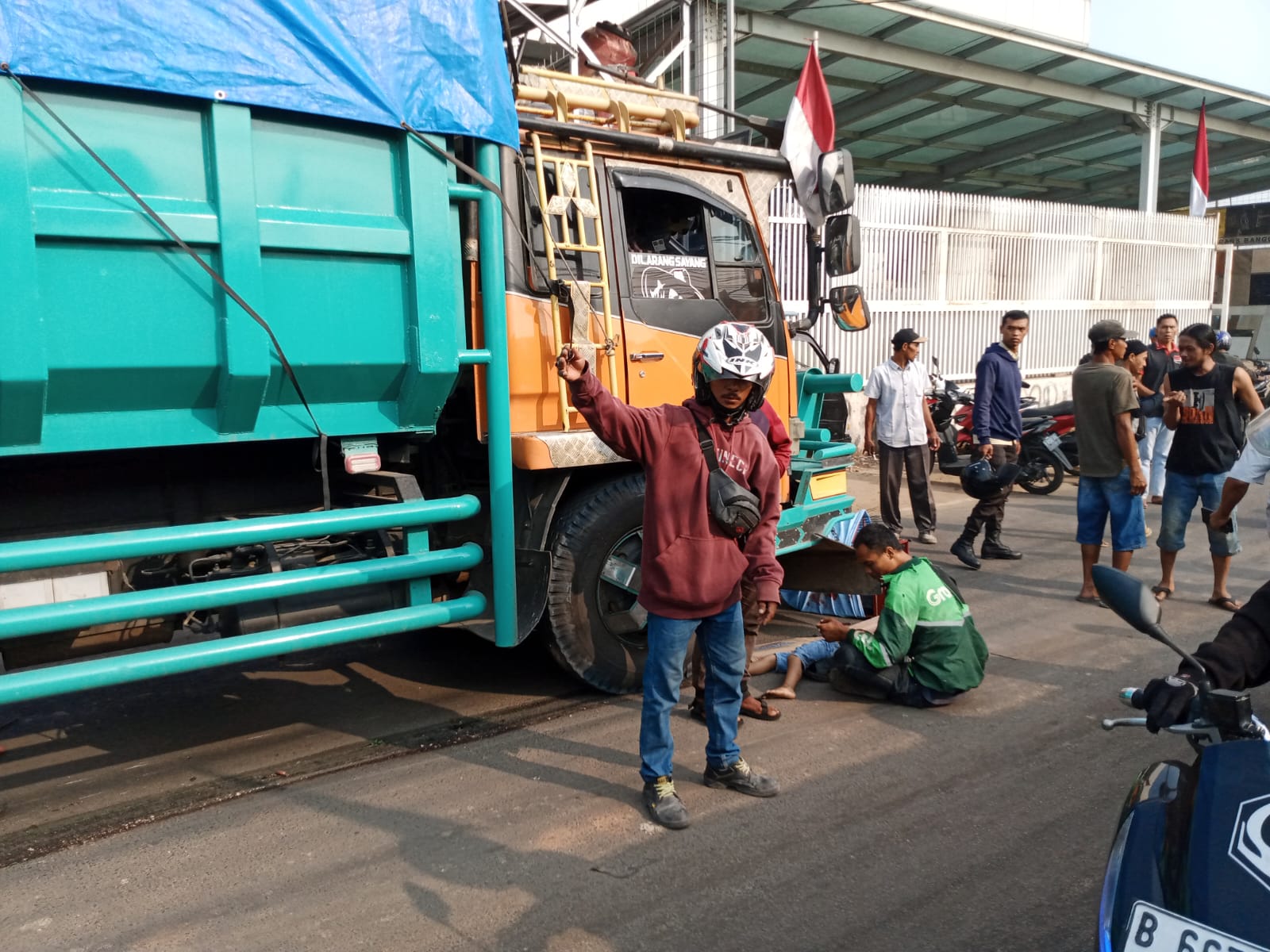 “Dari yang saya lihat, ada satu anak kecil yang terlindas, dan satu lagi dewasa pakai jaket Ojek Online,” ujar Sumirat.
