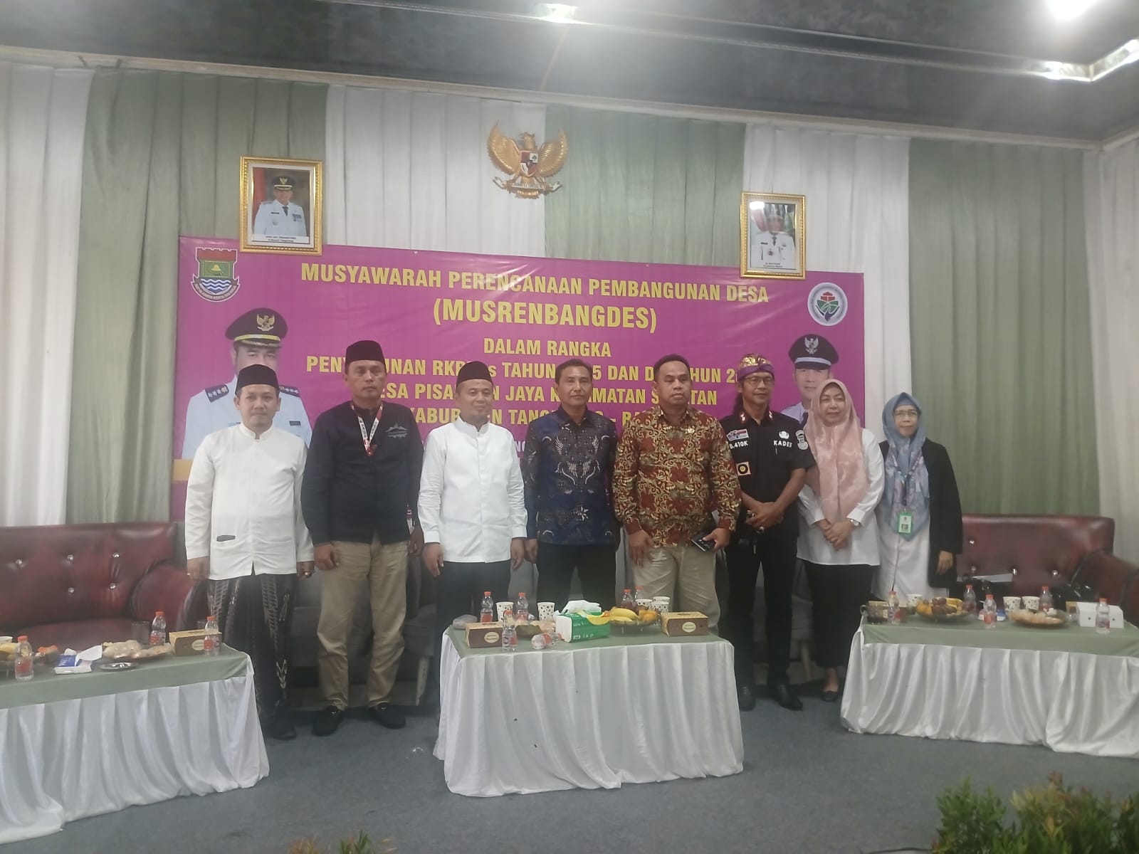 PATRIOTNUSANTARANEWS.COM | KAB TANGERANG – Musyawarah Rencana Pembangunan Desa (Musrenbangdes) Desa Pisangan Jaya yang dihadiri M. Hotib Kades Pisangan Jaya, Anggota DPRD Provinsi Fraksi PKB Syarifudin Salwani SE, Anggota DPRD Kabupaten Tangerang Fraksi PPP H. Syarif Hidayatulloh, Anggota DPRD Kabupaten Tangerang Fraksi PAN H. Ma’mun Murod S.Ag, Muspika Kecamatan Sepatan, Ketua BPD dan Anggotanya, RT, RW, Jaro, dan Masyarakat bertempat di Aula Desa Pisangan Jaya Kecamatan Sepatan Kabupaten Tangerang Provinsi Banten, Jum’at 06/09/2024.