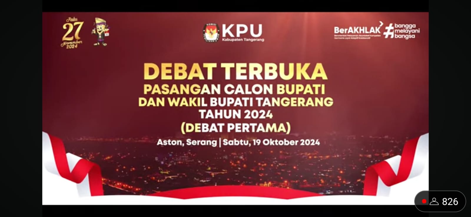 PATRIOTNUSANTARANEWS.COM | TANGERANG – Komisi Pemilihan Umum (KPU) Kabupaten Tangerang menggelar Debat Terbuka pasangan Calon Bupati (Cabup) dan Calon Wakil Bupati (Cawabup) Kabupaten Tangerang Tahun 2024, nomor urut 1, Mad Romli-Irvansyah, nomor urut 2, Maesyal-Intan dan nomor urut 3, Zulkarnain-Lerru, debat pertama bertempat di Hotel Aston Serang. Sabtu 19/10/2024.