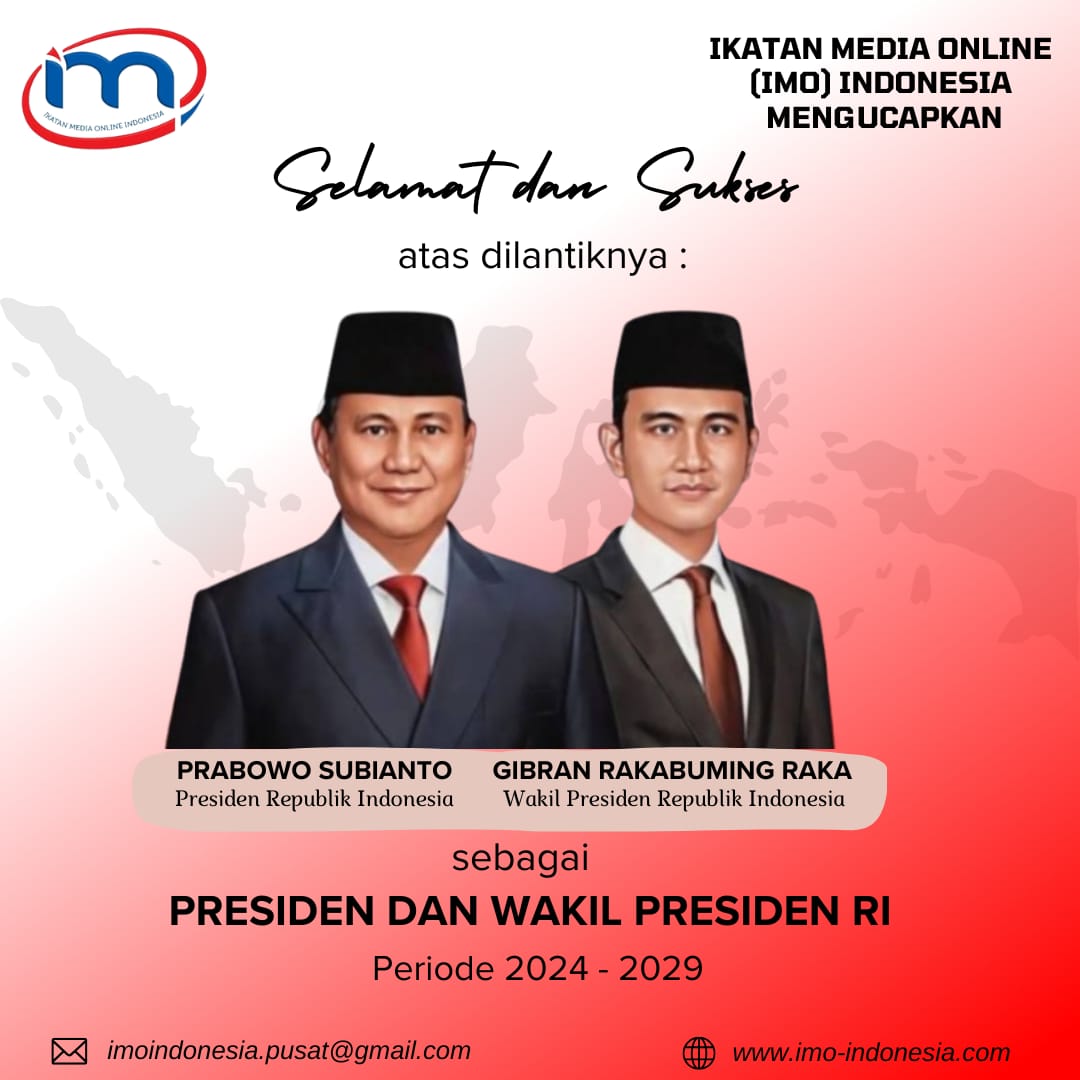 PATRIOTNUSANTARANEWS.COM | JAKARTA – Ikatan Media Online (IMO) Indonesia memberikan ucapan selamat dan doa atas pelantikan presiden dan wakil presiden terpilih periode 2024-2029, Prabowo Subianto-Gibran Rakabuming Raka yang berlangsung di Gedung MPR/DPR.