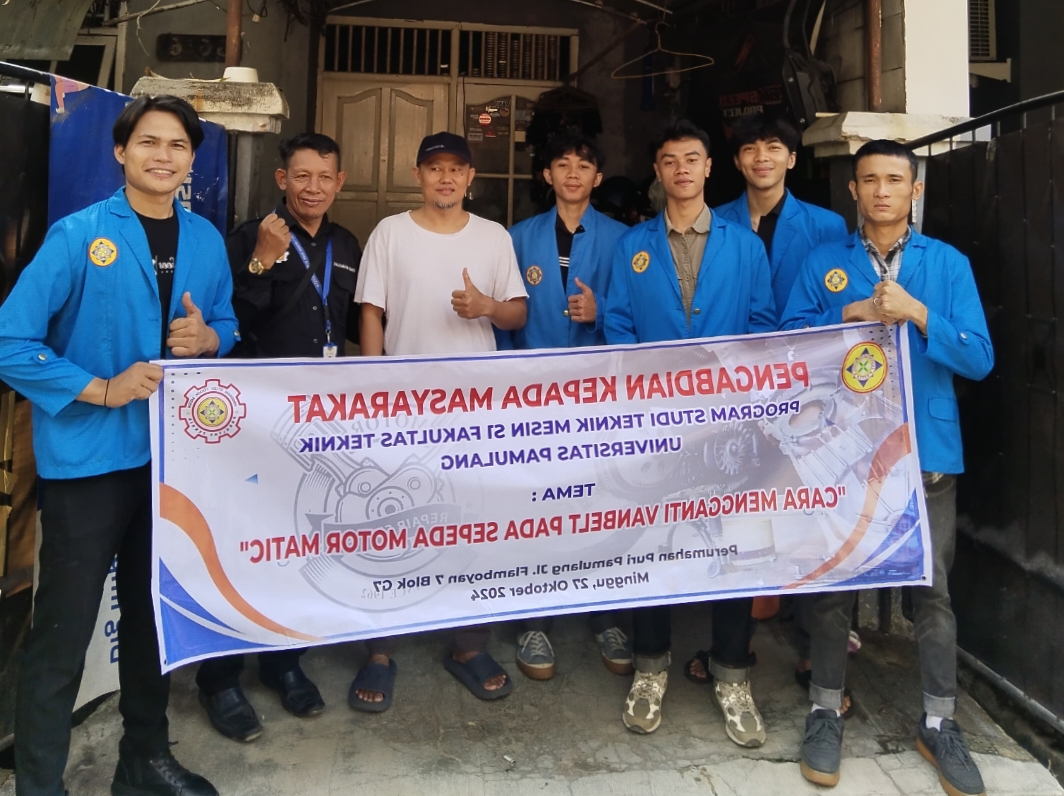 PATRIOTNUSANTARANEWS.COM | TANGERANG SELATAN – Mahasiswa Teknik Mesin Universitas Pamulang (Unpam) yang tergabung dalam kelompok Pengabdian Kepada Masyarakat (PKM) melakukan pelatihan pergantian Van belt pada sepeda motor terhadap warga masyarakat Perumahan Puri Pamulang RT 003 RW 009 Jalan Flamboyan Nomor 7 Blok G6 Kecamatan Pamulang Kota Tangerang Selatan Provinsi Banten pada hari Minggu tanggal 27 Oktober 2024.