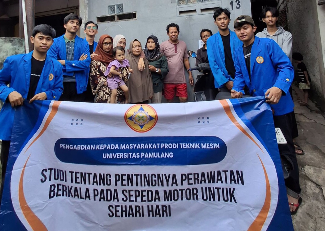 JAKARTA SELATAN – Mahasiswa Teknik Mesin Universitas Pamulang (Unpam) yang tergabung dalam kelompok Pengabdian Kepada Masyarakat (PKM) melakukan studi tentang pentingnya perawatan berkala sepeda motor untuk sehari-hari pada Masyarakat Lenteng Agung, Gang Setiabudi RT 011 RW 008 Kelurahan Srengseng Sawah Kecamatan Jagakarsa Kota Jakarta Selatan Provinsi DKI Jakarta. Kamis, 7 November 2024.