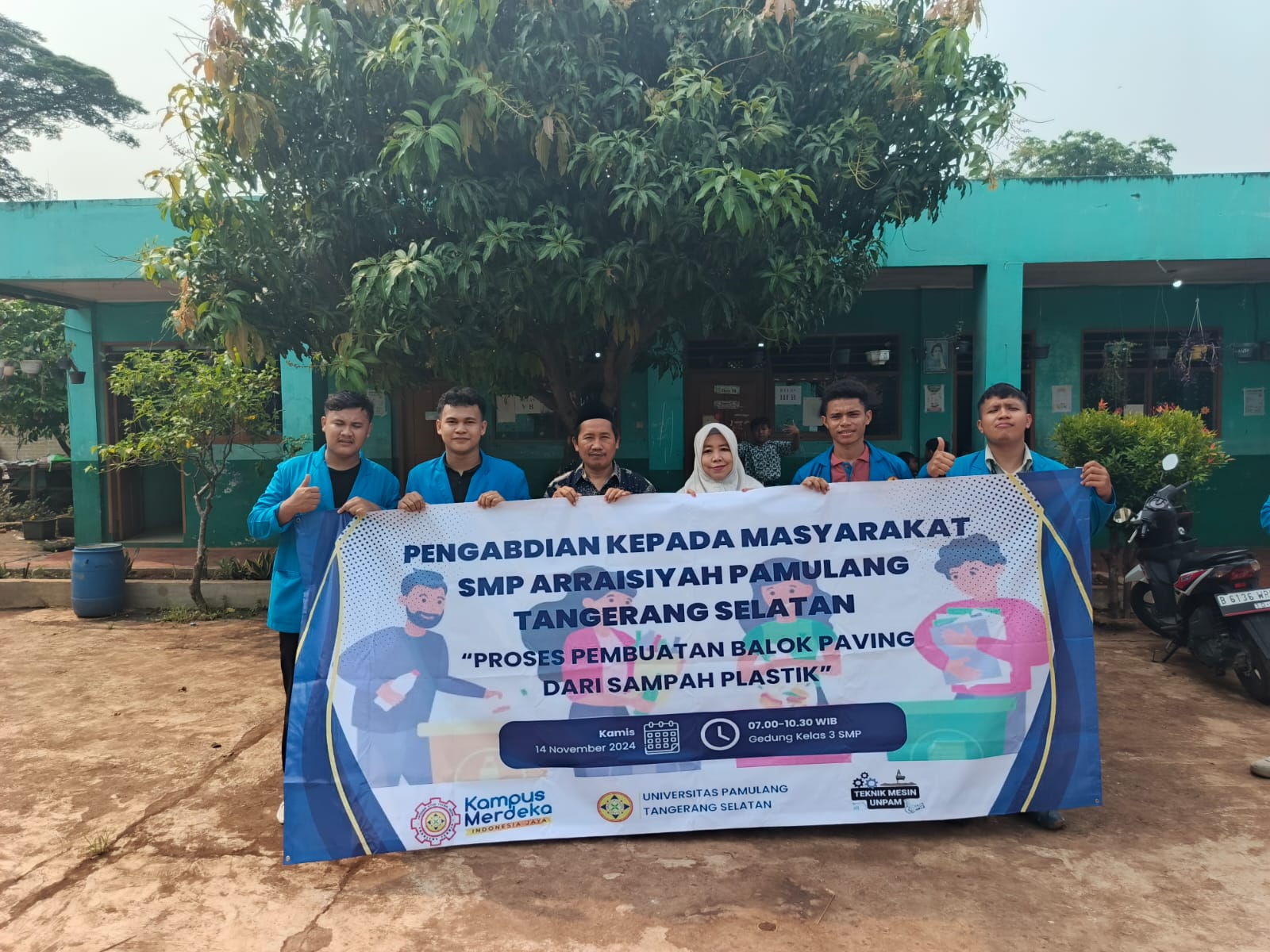 PKM Mahasiswa Teknik Mesin UNPAM Edukasi Pembuatan Paving Blok dari Sampah Plastik di SD-SMP Ar-Raisiyah