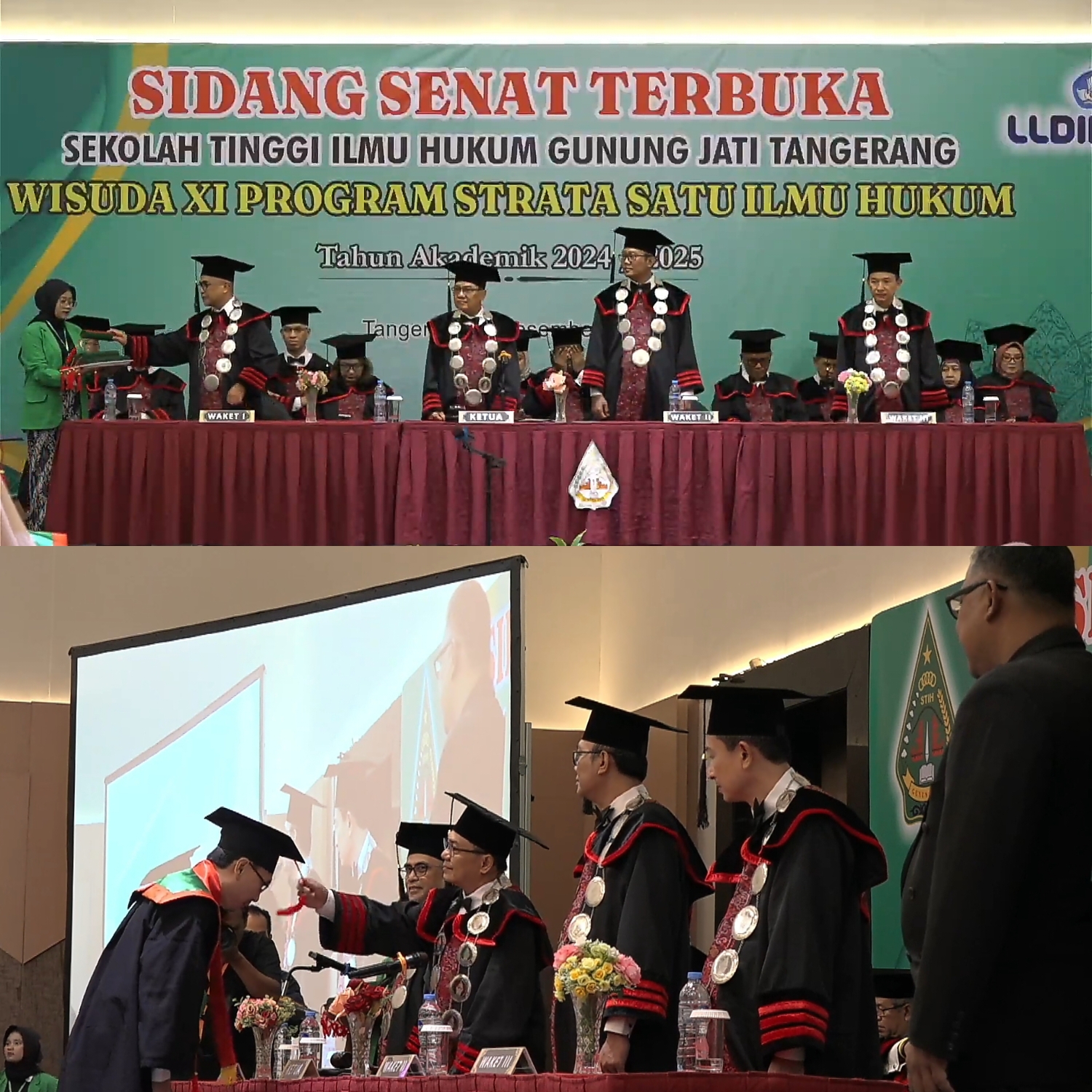 Ketua STIH Gunung Jati Tangerang Kushartoyo Budi Santoso, S.H., M.H. resmi membuka Sidang Senat Terbuka STIH Gunung Jati Tangerang Wisuda ke XI Program Strata Satu Ilmu Hukum Tahun Akademik 2024/2025 pada 7 Desember 2024 di D’Prima Hotel Tangerang .