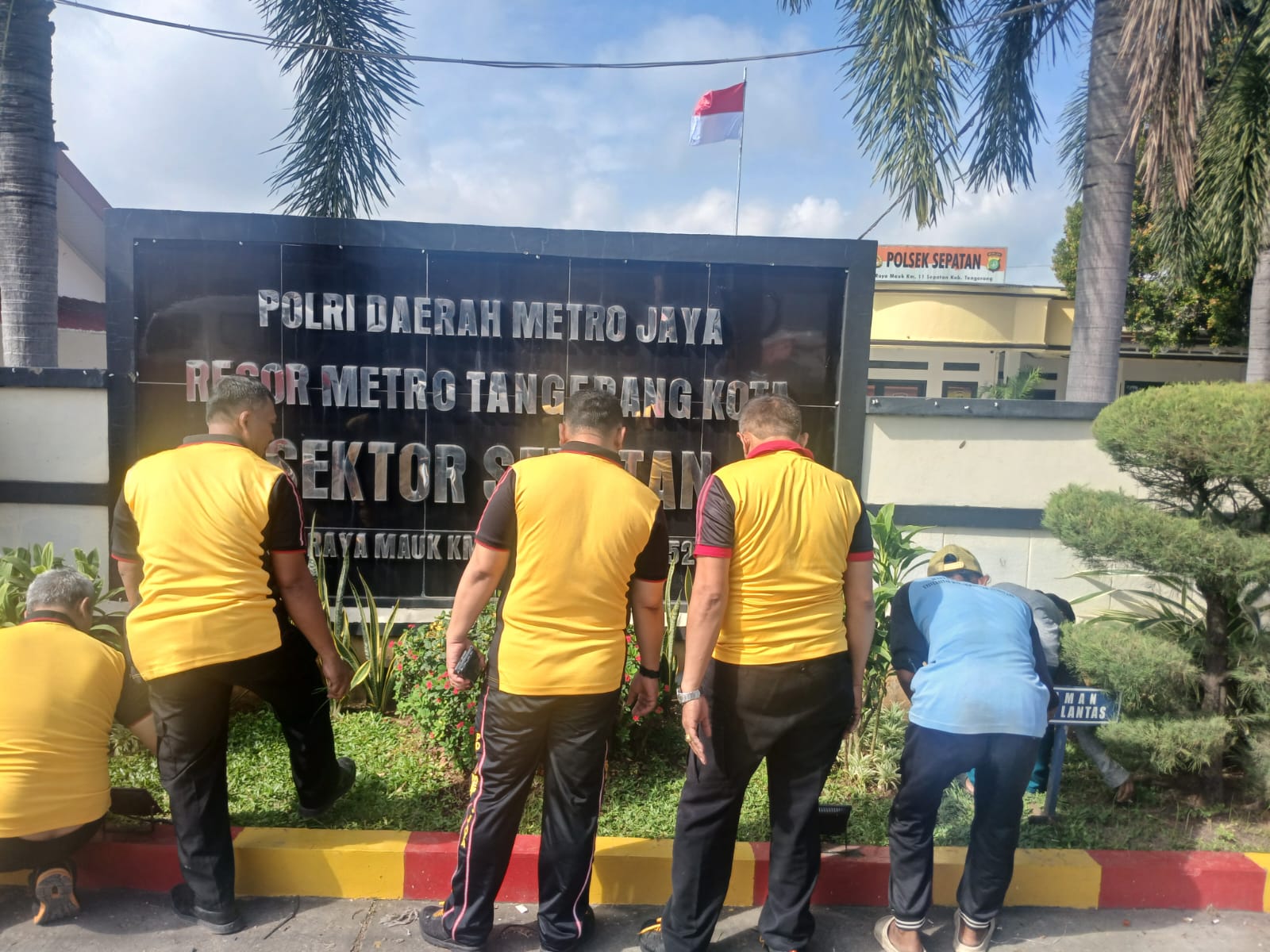 Kapolsek Sepatan Giat Olahraga dan Kerja Bakti di Lingkungan Polsek