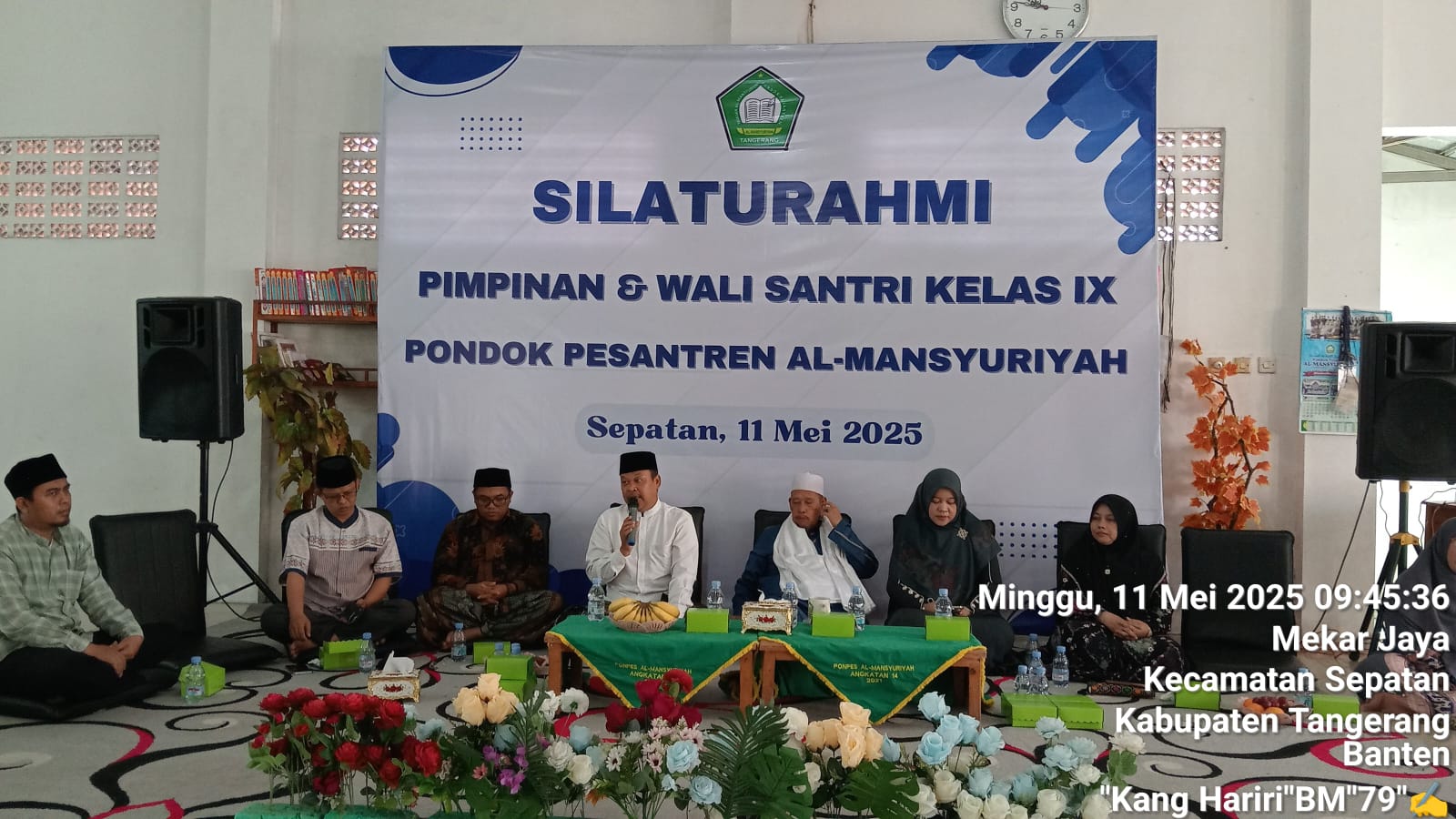 PATRIOTNUSANTARANEWS.COM | TANGERANG – Pondok Pesantren Al-Mansyuriyah yang beralamat Kampung Grudug, Desa Mekar Jaya, Kecamatan Sepatan, Kabupaten Tangerang, Provinsi Banten. Menggelar rapat silaturahmi dihadiri Pimpinan pondok , Pengurus dan Wali Santriwati, Santriwan Kelas IX (sembilan/Kelas 3 MTS/SMP). Rapat yang diPimpin oleh KH. Sholahuddin ,S.Ag ini bertujuan untuk memperkuat komunikasi dan membahas perkembangan santri menjelang Kelulusan Tahun Ajaran 2024/2025 pada hari Minggu pagi pukul 09.00 WIB s/d selesai. (11/05/25).