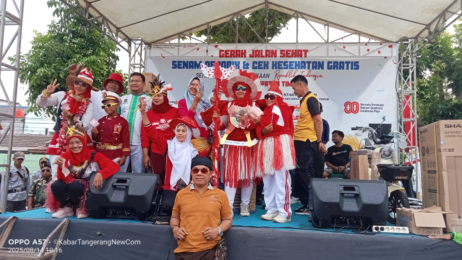 KAB TANGERANG – Jalan sehat menyambut HUT RI ke 80 tahun disemarakkan Pemerintah Kecamatan Sepatan Timur Kamis 14/08/2025.