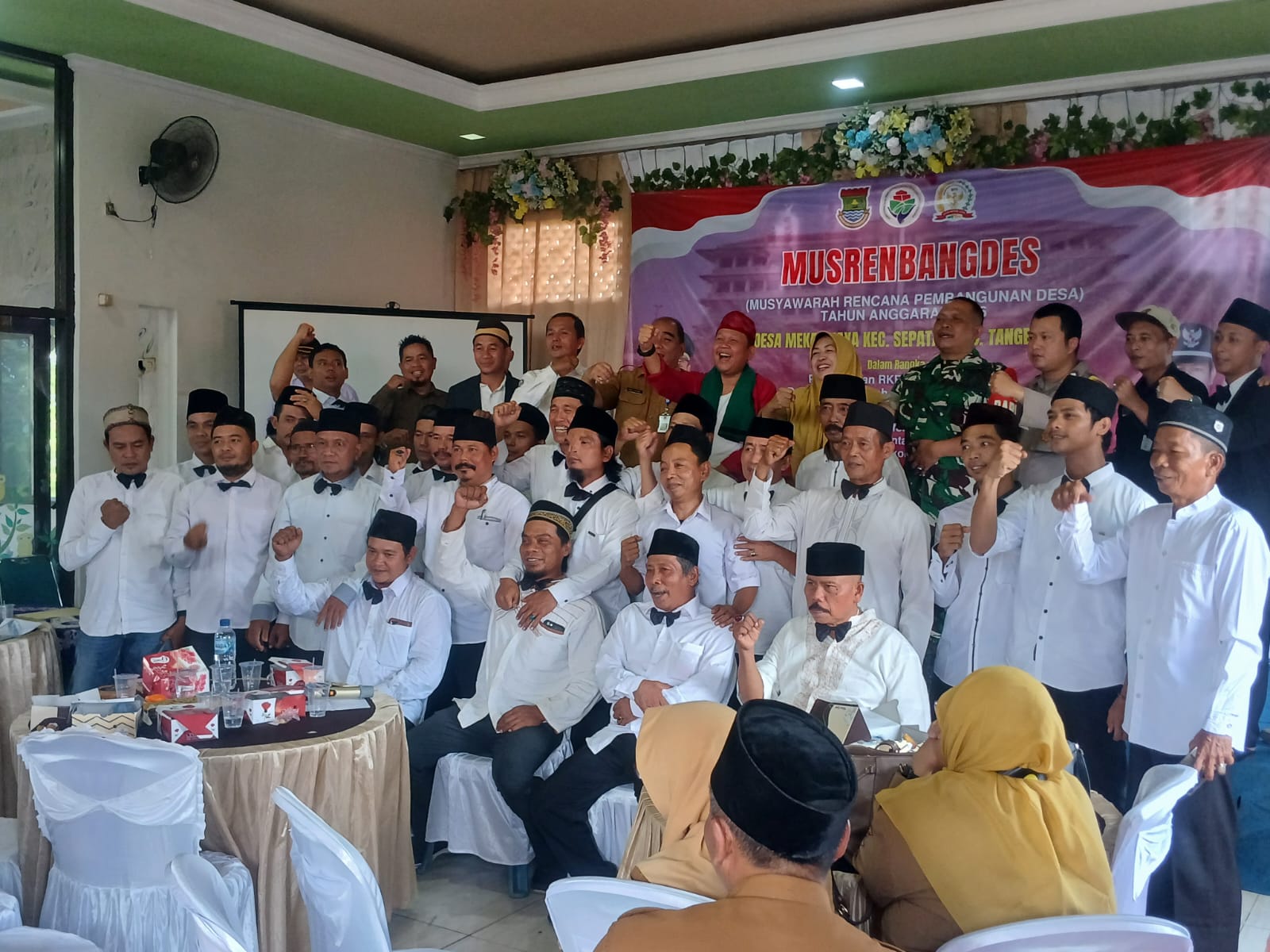 PATRIOTNUSANTARANEWS.COM | KAB TANGERANG – Musyawarah rencana pembangunan desa (Musrenbangdes) Tahun Anggaran 2026, visi “Penguat pondasi transformasi sosial ekonomi tata kelola pemerintahan infrastruktur dan Ekologi” yang dihadiri Kepala Desa Mekarjaya M Gojali SE, Camat Sepatan Aan Ansori SE. M.Si, Sekcam Kecamatan Sepatan Dede Supriyadi, Ketua BPD Desa Mekarjaya Suleman, Pendamping Lembaga Desa (PLD) Suryadi, ketua TP PKK Desa Mekarjaya Elsa Ayuningtias , para Muspika Kecamatan Sepatan, para Kaur Desa Mekarjaya, Jaro, RT, RW, Binmas/ Babinsa, Bidan Desa, Kader dan Tokoh Masyarakat bertempat di Aula Desa Mekarjaya Kecamatan Sepatan Kabupaten Tangerang Provinsi Banten, Selasa 23/09/2025.