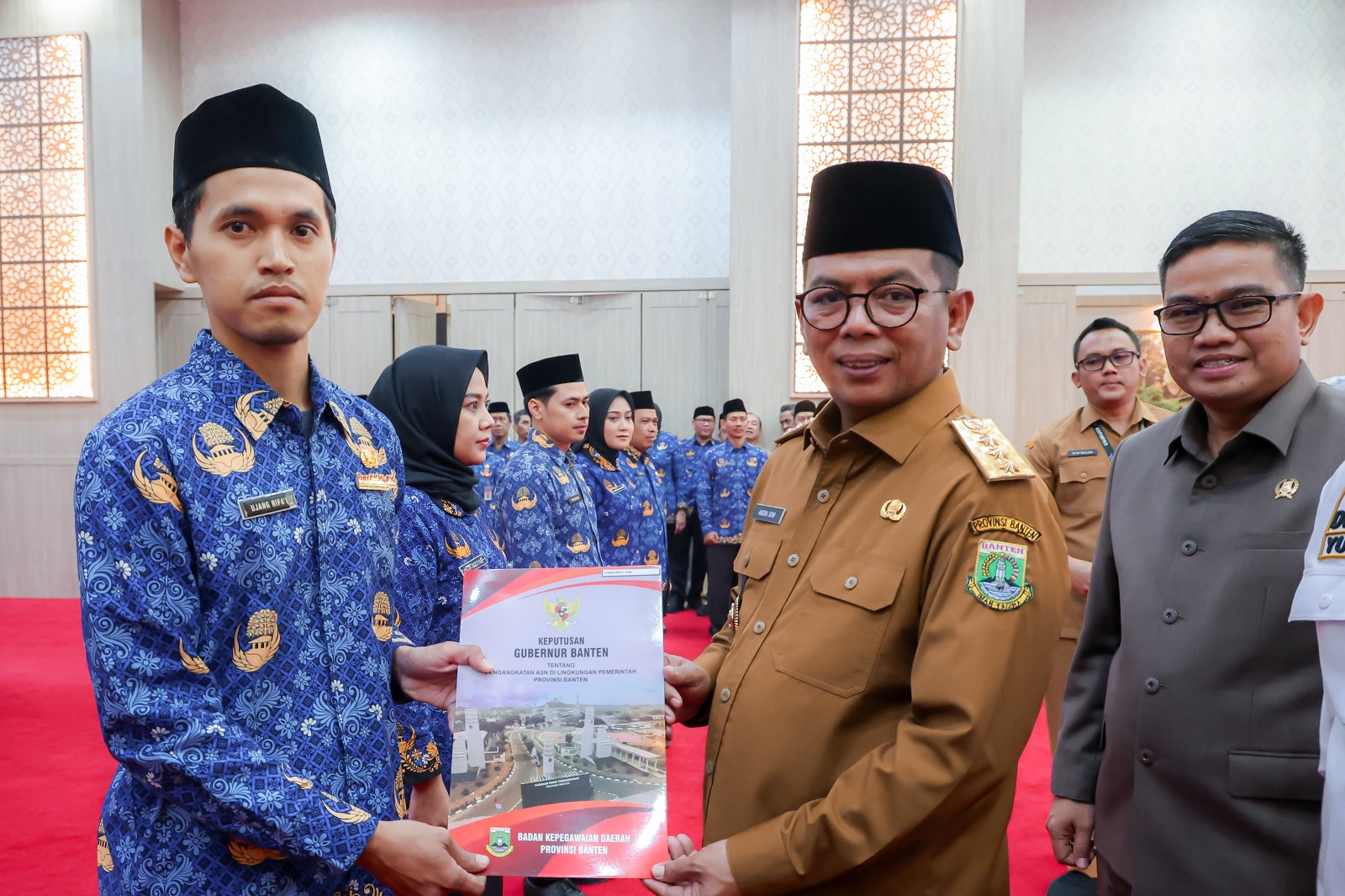PATRIOTNUSANTARANEWS.COM | KOTA SERANG – Gubernur Banten Andra Soni menyerahkan 1.593 Surat Keputusan (SK) Pegawai Pemerintah dengan Perjanjian Kerja (PPPK) Tenaga Teknis, Tenaga Kesehatan, dan Tenaga Guru Tahap II Formasi Tahun 2024 di Pendopo Gubernur Banten, Kawasan Pusat Pemerintahan Provinsi Banten (KP3B), Kota Serang, Selasa (14/10/2025).