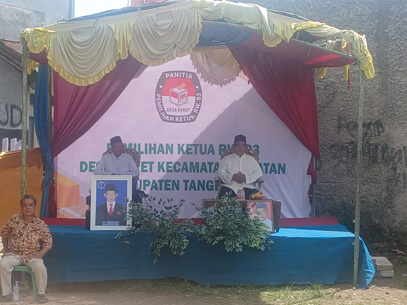 PATRIOTNUSANTARANEWS.COM | KAB TANGERANG – Pemilihan RW 03 Desa Karet yang dihadiri para Calon H. Nurdin dan Abdul Karim, Kades Mudi desa Karet, BPD Desa Karet, Panitia, Binamas/ Babinsa Desa Karet, Linmas Desa Karet, RT setempat, dan Warga masyarakat Desa Karet bertempat di Lapangan PDAM di RT 02/03 Desa Karet Kecamatan Sepatan Kabupaten Tangerang Provinsi Banten Minggu 16/11/2025.