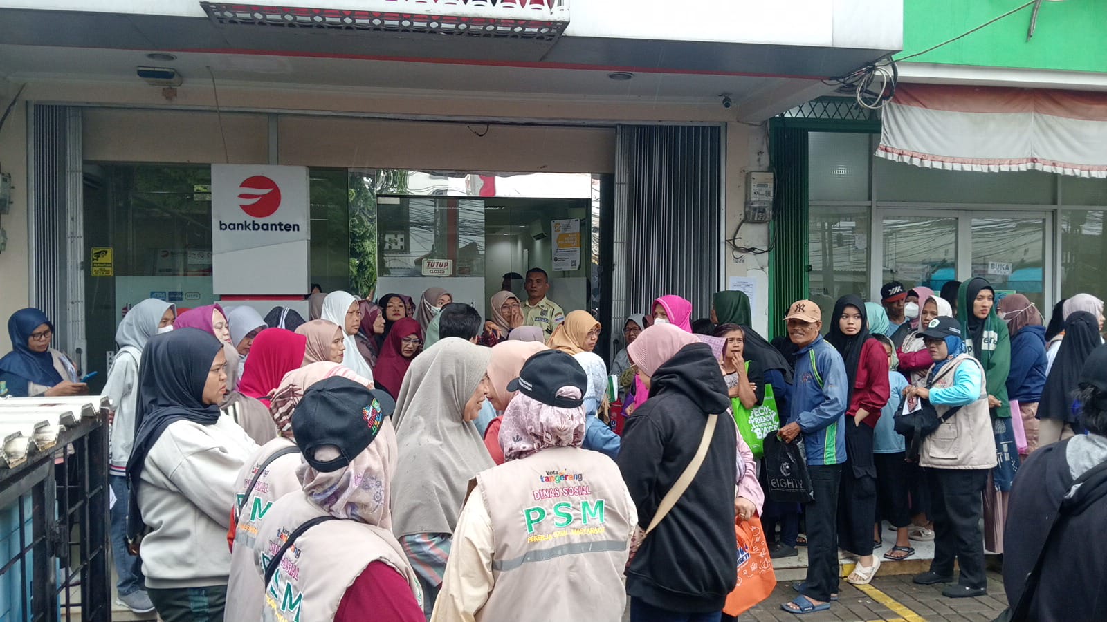 PATRIOTNUSANTARANEWS.COM | TANGERANG – Pemerintah Provinsi (Pemprov) Banten bekerja sama dengan PT.Bank Pembangunan Daerah Banten (Perseroda) Tbk, (Bank Banten) dan Dinas Sosial (Dinsos) Kota Tangerang menyalurkan Bantuan Jaminan Sosial Keluarga (BJSK) kepada 1.227 penerima warga Kota Tangerang. Bantuan ini merupakan program Pemprov Banten untuk menangani kemiskinan ekstrem dan disalurkan secara tunai melalui Bank Banten di Kantor Cabang Pembantu (KCP) Ciledug, Jl. KH. Hasyim Ashari, Kecamatan Pinang, Kota Tangerang pada Kamis,18 Desember 2025 hingga selesai.