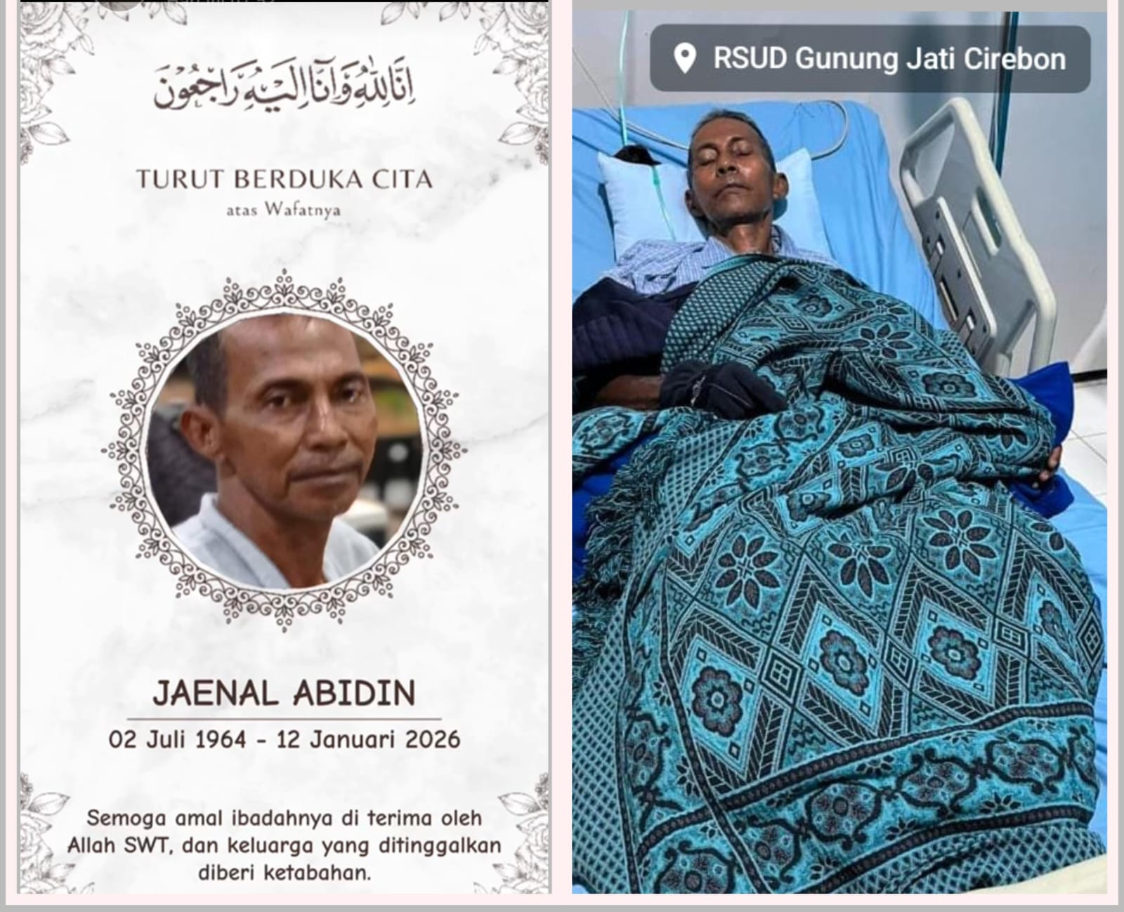 PATRIOTNUSANTARANEWS.COM | TANGERANG – Innalillahi wainnaillaihi roji’uun, Telah pulang ke-Rahmatullah Jaenal Abidin Bin Saleh, usia 62 tahun, karena sakit, pada pukul 02.15 WIB, Senin, 12 Januari 2026, di RS Gunung Jati Cirebon, Jawa Barat.