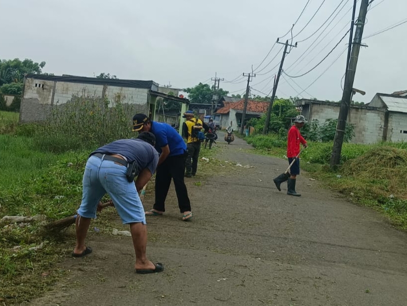 Desa Mekarjaya Ada Giat Kerja Bakti Bersih-Bersih Got dan Rumput di Pinggir Jalan Utama