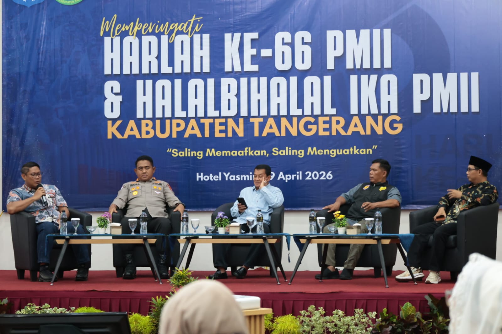 PATRIOTNUSANTARANEWS.COM | KAB TANGERANG – Bupati Tangerang Moch. Maesyal Rasyid menghadiri acara Halal Bihalal yang dirangkaikan dengan peringatan Hari Lahir (Harlah) ke-66 Pergerakan Mahasiswa Islam Indonesia (PMII) yang digelar di Yasmin Hotel, pada Minggu (19/4/26).