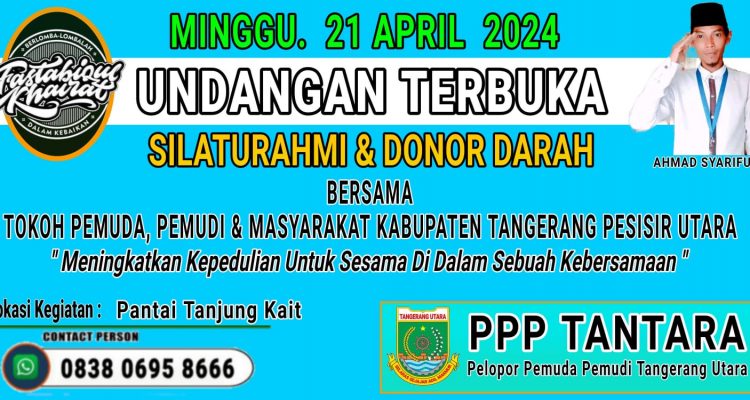 Undangan Terbuka “Silaturahmi dan Donor Darah Bersama Tokoh Pemuda Pemudi Serta Tokoh-tokoh Masyarakat Pantura” news|Februari 24, 2024oleh redaksi - PATRIOTNUSATARANEWS.COM |TANGERANG – Ahmad Syarifudin selaku tokoh muda terus membara dan tidak